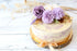 Beautiful Lavender and Blueberry marbled vanilla almond cake. Made with the finest all-natural ingredients. Includes a generous bed of fresh berries between the cake layers. Cake comes with flower toppers. Available in two colors: Violet, or Pink.