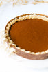 Ingredients: cashew, sweet potato puree, coconut milk, maple syrup, coconut oil, cinnamon, ginger, nutmeg. crust: sorghum and oat flour, coconut sugar, vanilla, pink salt, baking soda.